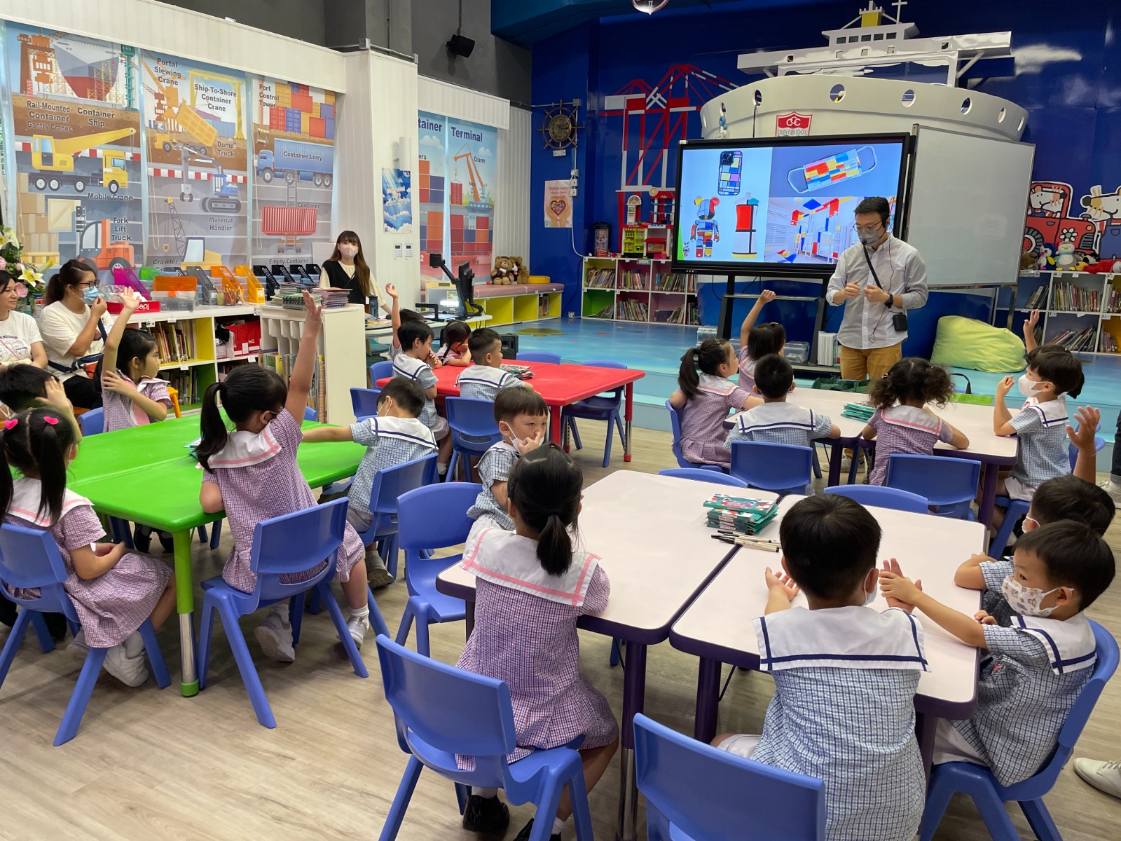 我們的學校以粵語為母語的教學基礎,致力於培養學生的語言能力和思考能力。校本特色之一是我們的「主題時間」,在這段時間內,幼兒們有機會參加『每日一問』的活動。小組討論及匯報的環節有助旨在激發幼兒的思考和推理能力,也培養孩子面對群眾表達的信心。